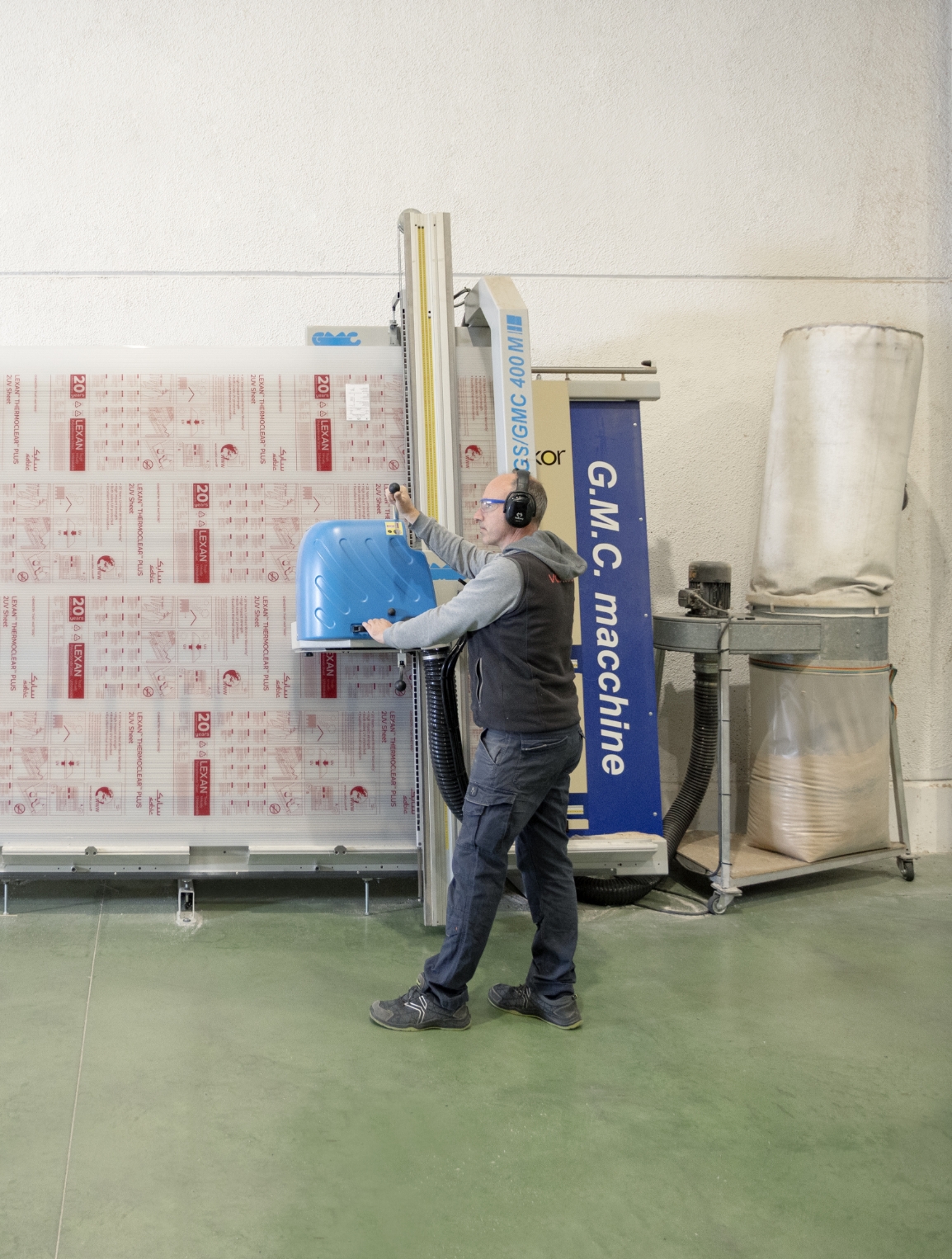 Elle nous permet de thermoformer les matériaux plastiques avec lesquels nous travaillons, de jusqu’à 3 mètres de longueur et 20 mm d’épaisseur. Avec cette plieuse, nous confectionnons tout type d’écrans, de vitrines ou de pièces avec n’importe quel angle.